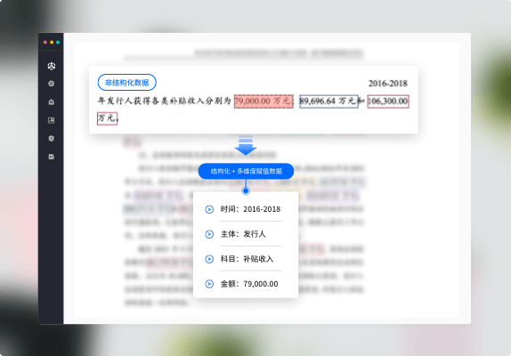 evo真人视讯财报解析与核查系统是一款针对于财务报表、审计报告、年报等报告中的财务主表进行结构化提取、数据校验,并输出成统一模板的系统。本系统可实现将格式多样的财务报表结构化解析成统一格式...